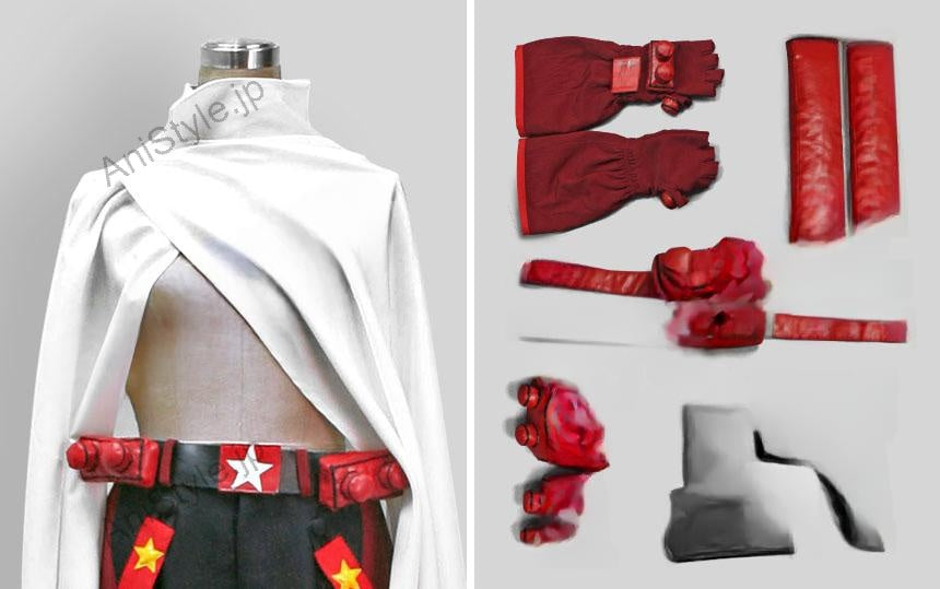 セット内容:計5点マント、ズボン、ベルト、手袋、靴カバー■素材:ポリ混紡生地、ベルベット生地、合皮生地■商品詳細:▼マント白を基調したポリ混紡生地にて製作します。元絵を完璧に再現しました。▼ズボンベルベット生地にて製作したズボンです。上の部分はグレーにして、下の部分は赤にします。黄色い星が飾って、個性をアピールしました。▼部品赤いベルトがあり、その上に飾り物もあります。赤い手袋と黒い合皮製の靴カバーが配置します。■備考欄:※こちらのシャーマンキング