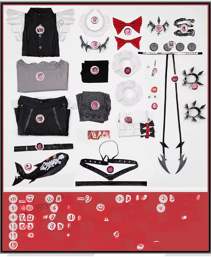 セット内容:計25点上着、スカート2点、安全パンツ、尻尾、飾り物(カチューシャ、髪飾り、耳節り、頸飾り、腕飾り2点、腰飾、飾りパーツ、蝶結び2点、エプロン、ベルト、飾り紐、ネイルステッ力一、パンスト)■備考欄:ゼンレスゾーンゼロ