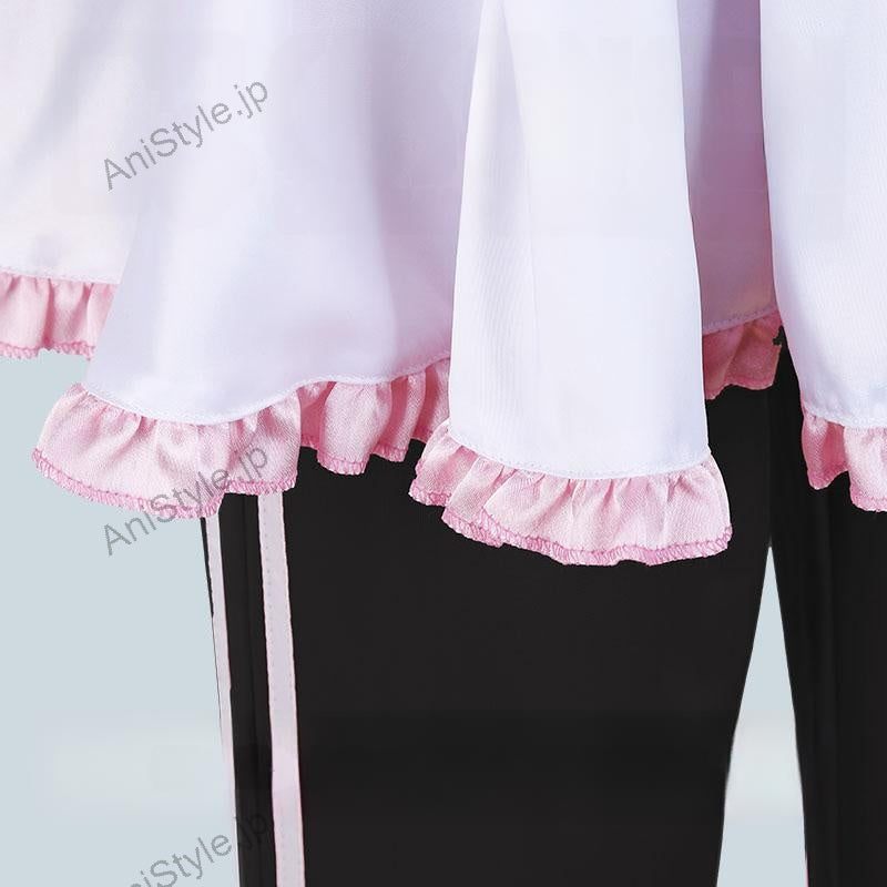 素材:ジャージ生地、サテン■商品詳細:▼ジャージジャージ生地で製作されました。袖と裾はリブ編みになっています。メッシュ裏地で着心地よく仕上げています。▼スカートサテンで製作されました。スカートにタックが入っていて広がっています。▼パンツジャージ生地で製作されました。サイドに白いラインを2本付けています。■備考欄:※こちらのゾンビランドサガアニメOP徒花ネクロマンシー