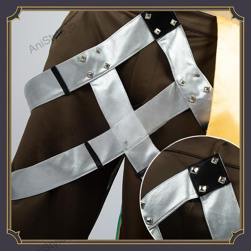 セット内容:計15点ジャケット、上着、インナー、パンツ、飾り物(髪飾り、耳飾り、腕飾り、手袋4点、腰飾り、縫いぐるみ、飾りパーツ2点)■素材:ポリエステルギャバ、合皮、ダンボールニット生地、ミルクファイバーライス■商品詳細:▼ジャケットポリエステルギャバと合皮で製作しています。フード付きのジャケットで、両サイドに本物のポケットが施されています。胸先に電光のような柄が施されてかっこいいです。▼上着ダンボールニット生地で製作しています。へそ出しの袖なしで、正面にチャックが付いて脱着しやすいです。▼インナーミルクファイバーライスで製作しています。いい素材を使ったので通気性と着心地が高いです。▼パンツダンボールニット生地で製作しています。運動しやすいクロップドパンツで、両側に本物のポケットが施されて便利です。■備考欄:バーチャル