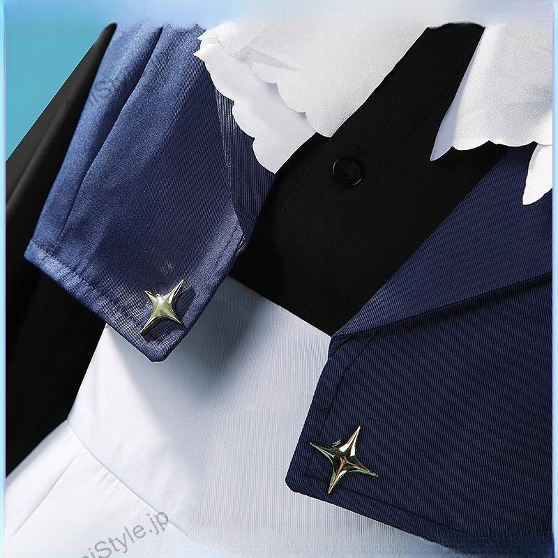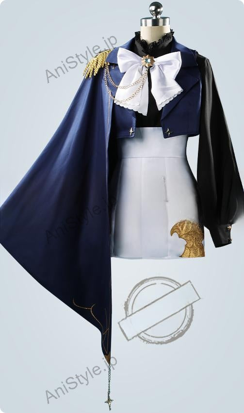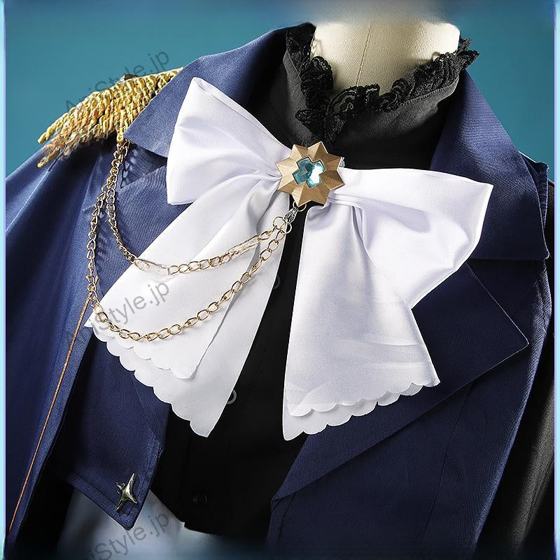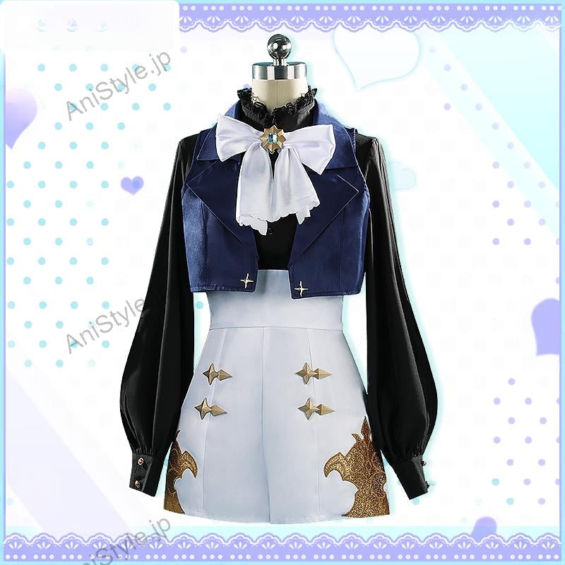 セット内容:計11点ベスト、シャツ、パンツ、飾り物(帽子、リボン、肩掛け、飾りパーツ2点、レッグベルト、ハイソックス2点)■素材:ポリエステルツイル、シャツ生地、ポリエステルギャバ、合皮■商品詳細:▼ベストポリエステルツイルで製作しています。無地のベストで、裾に二つの四芒星形パーツが施されて再現度が高いです。▼シャツシャツ生地で製作しています。真っ黒いシャツで、襟に黒いレースを縫い付けて綺麗に見えます。▼パンツポリエステルギャバで製作しています。白いショットパンツで運動しやすいです。■備考欄:バーチャル