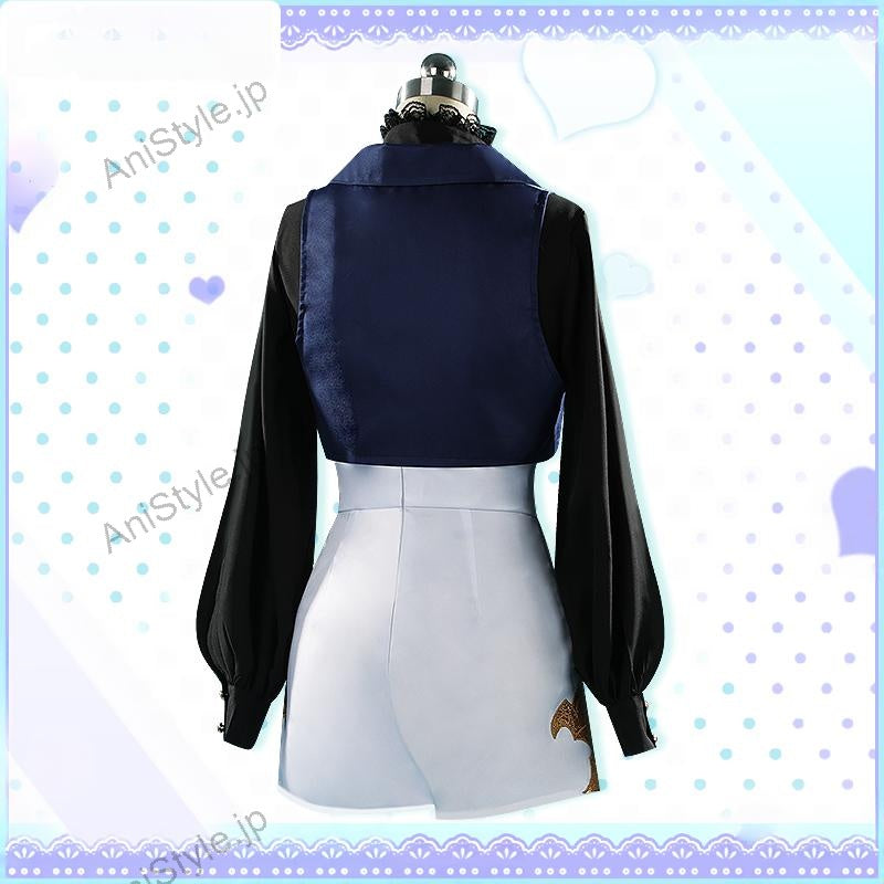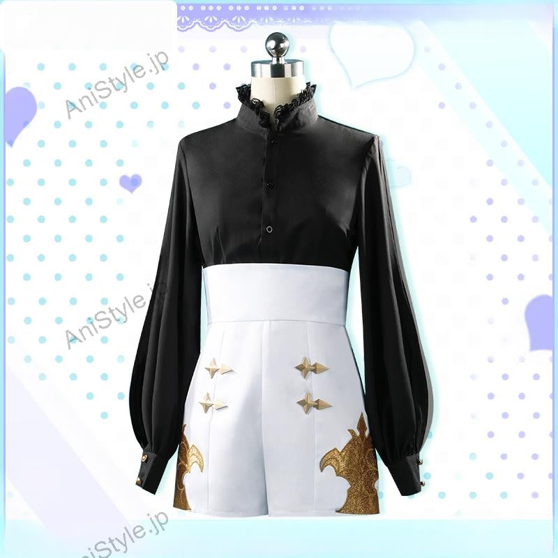 素材:ポリエステルツイル、シャツ生地、ポリエステルギャバ、合皮■商品詳細:▼ベストポリエステルツイルで製作しています。無地のベストで、裾に二つの四芒星形パーツが施されて再現度が高いです。▼シャツシャツ生地で製作しています。真っ黒いシャツで、襟に黒いレースを縫い付けて綺麗に見えます。▼パンツポリエステルギャバで製作しています。白いショットパンツで運動しやすいです。■備考欄:バーチャル