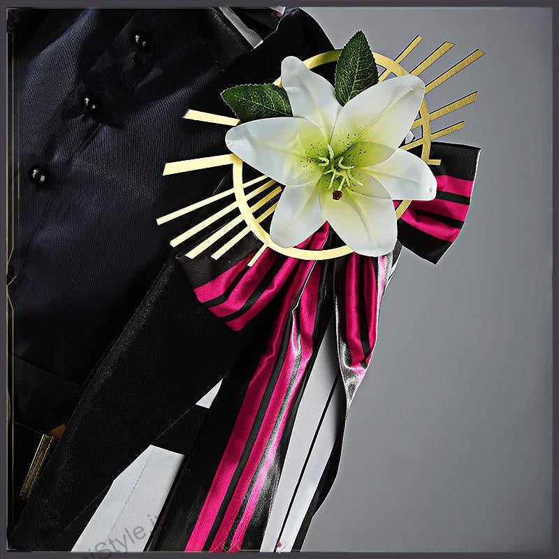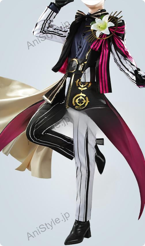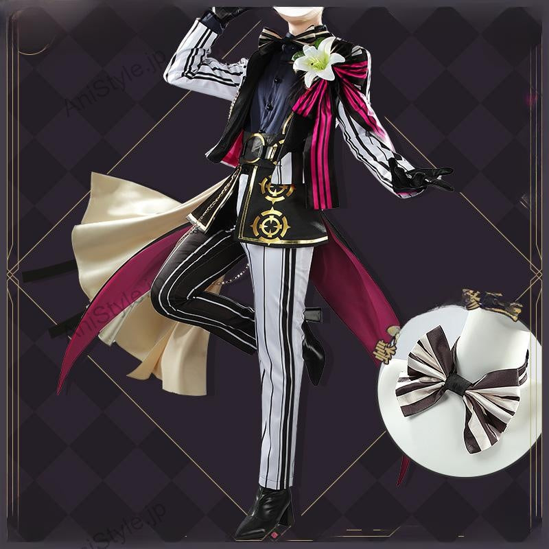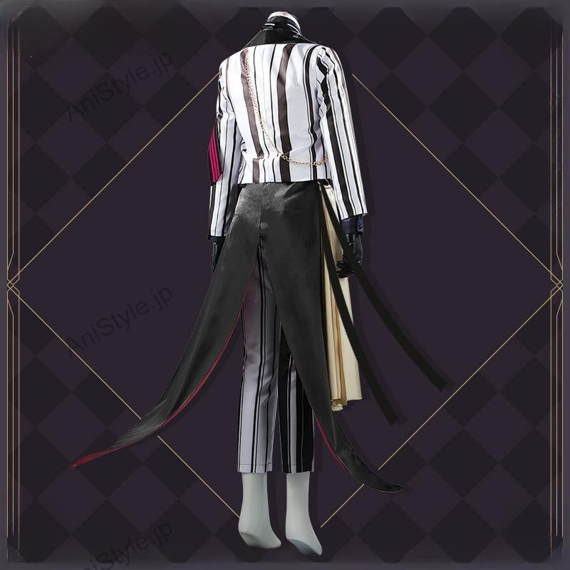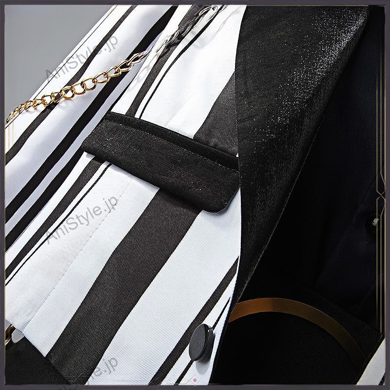 素材:ポリエステルギャバ、光沢布、サテン、合皮■商品詳細:▼ブレザー主にポリエステルギャバで製作しています。白地に黒い縞のブレザーで、両サイドにフェイクポケットが施されています。襟にさゆりの胸飾りが飾って綺麗に見えます。▼シャツポリエステルギャバで製作しています。無地のシャツで普段にも着られます。▼ズボンポリエステルギャバで製作しています。左右の裾の色が異なり個性的です。渡会ひばりさんのウィッグも販売中!お気になったらぜひクリックしてください。■備考欄:バーチャル