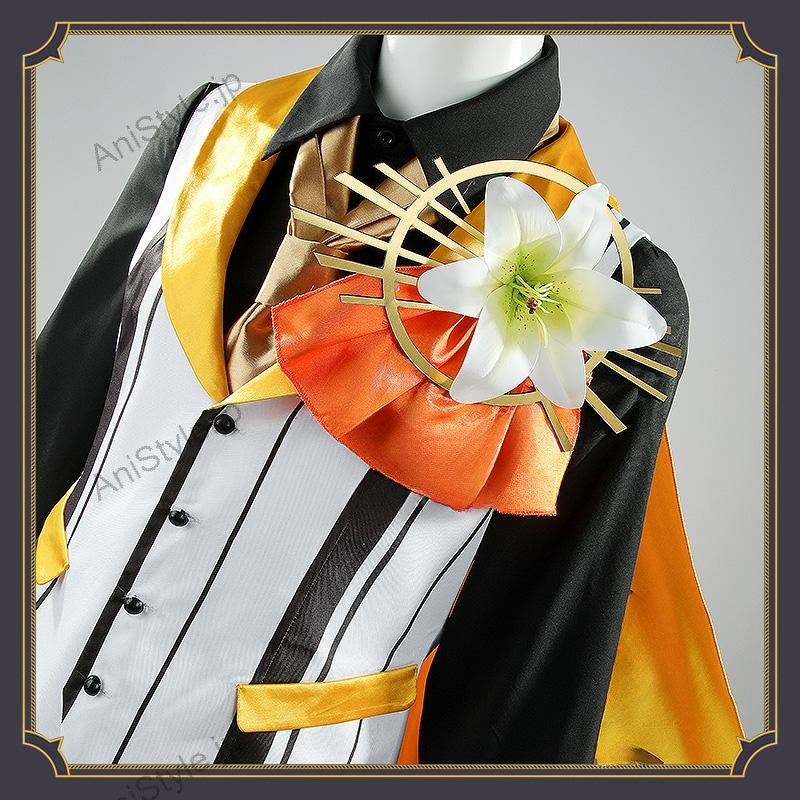 セット内容:計14点マント、ベスト、シャツ、ズボン、飾り物(ネクタイ、飾り布、飾り紐、胸飾り、飾りパーツ3点、手袋2点、ベスト)■素材:ポリエステルギャバ、光沢布、サテン、合皮■商品詳細:▼マント主にポリエステルギャバで製作しています。黒と白を基調として、大きな立ち襟が印象的です。▼ベストポリエステルギャバで製作しています。白地に黒い縞のベストで、両サイドにフェイクポケットが施されています。ウェストのくびれたラインが綺麗に見えます。▼シャツシャツ生地で製作しています。無地のシャツで普段にも着られます。▼ズボンポリエステルギャバで製作しています。左右の裾の色が異なり個性的です。■備考欄:バーチャル