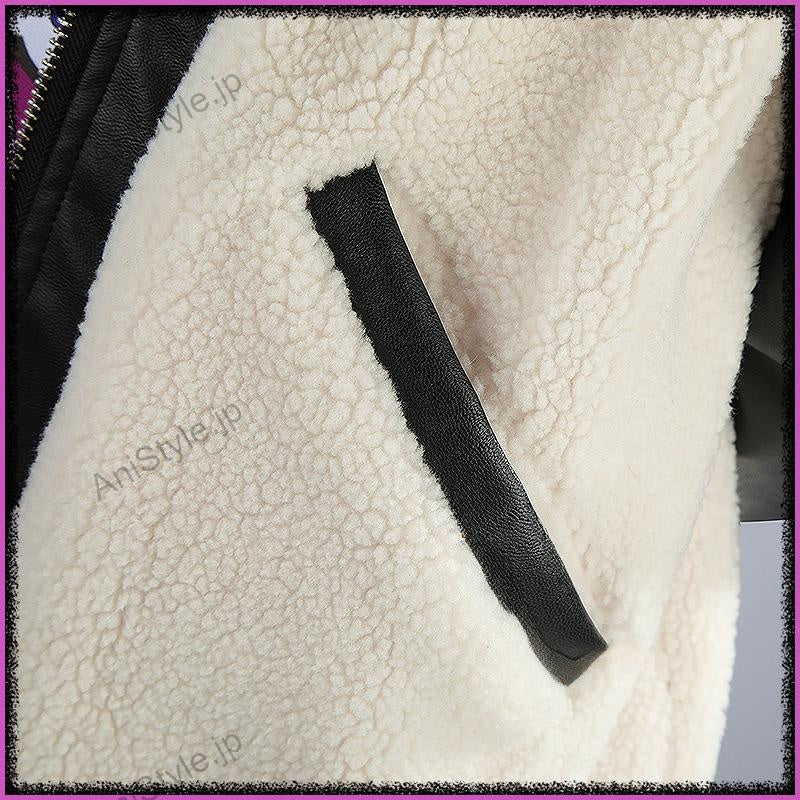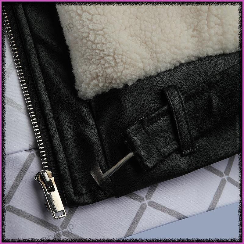 ▼ジャケットフリースとレザーで製作しています。胸に星の装飾が施されて、袖に黒を基調としてかっこいいです。
