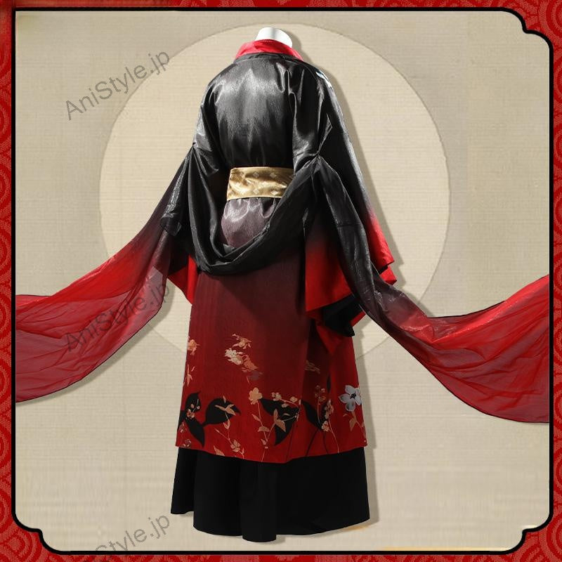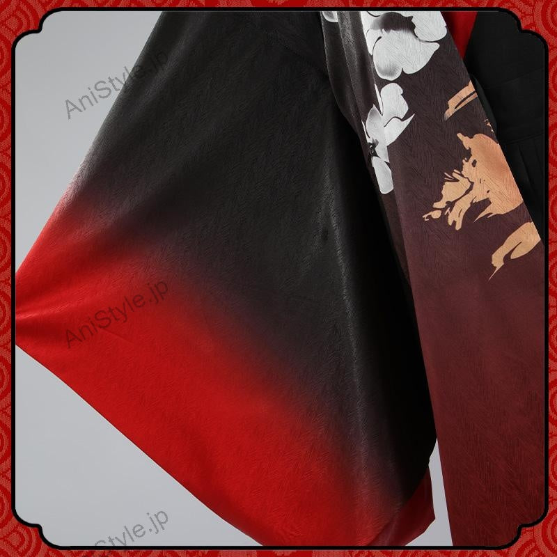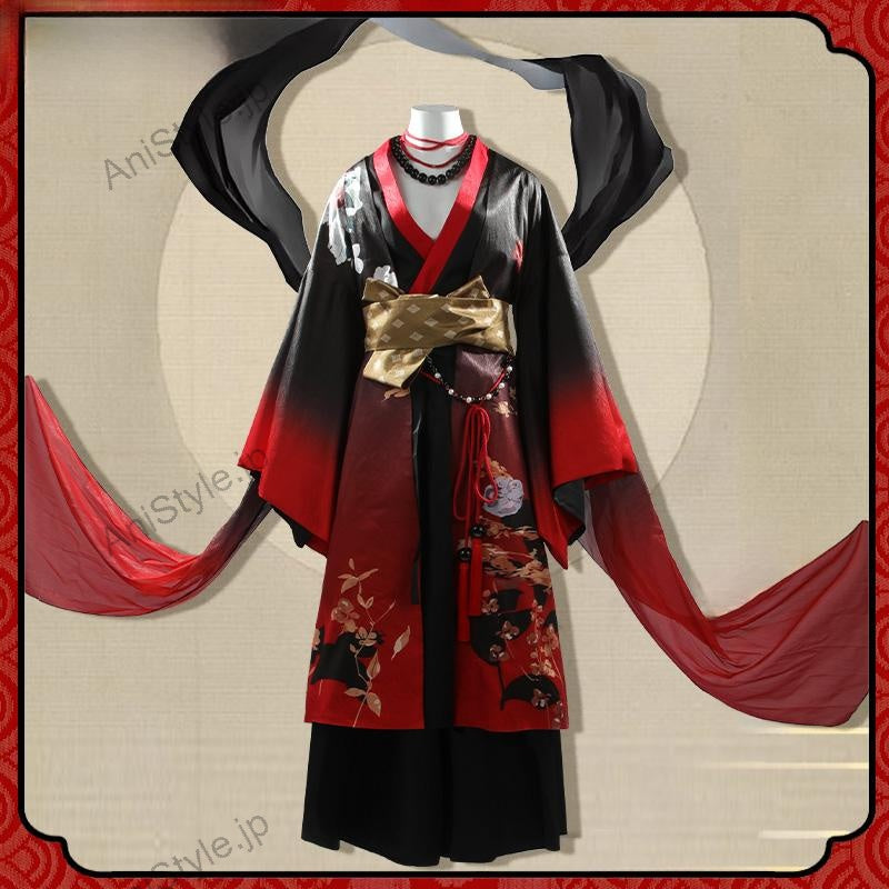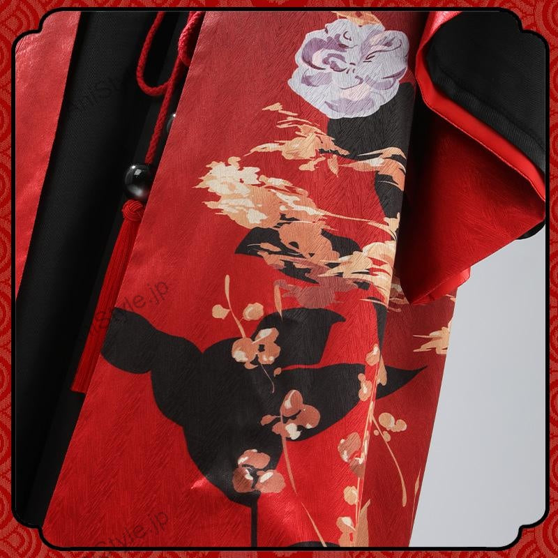 素材:ヘリンボーン、ポリエステルギャバ■商品詳細:▼着物ヘリンボーンで製作しています。黒と赤を基調として、右肩と裾に綺麗な絵柄がプリントされて再現度が高いです。▼上着ポリエステルギャバで製作しています。黒を基調として、袖が肩から袖口まで広くなっています。腕が自由に動くことができます。▼袴ポリエステルギャバで製作しています。無地の袴で運動しやすいです。いい素材を使ったので、透気性が良いです。■備考欄:バーチャル