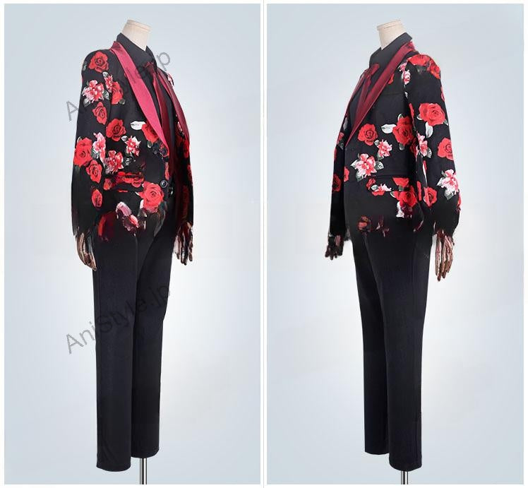 素材:ズック生地、ポリエステルツイル、シャツ生地■商品詳細:▼ジャケットズック生地で製作しました。タキシードカラーになっています。全身に赤いバラの模様が入っています。▼シャツシャツ生地で製作しました。スタンダードカラーになっています。黒を基調として、シンプルなシャツです。▼パンツポリエステルツイルで製作しました。シワにもなりにくく、長時間衣装を綺麗に維持する事ができます。▼飾り物ネクタイ、ベルトも付属しています。■備考欄:※こちらのヒプノシスマイク-Division