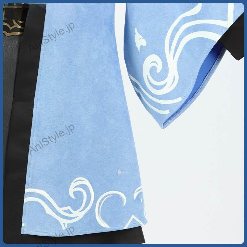 素材:スエード生地、デニム、ポリエステルギャバ、ニット生地■商品詳細:▼羽織スエード生地で制作しています。柔らかな手触りで着心地は抜群です。袖口と裾に個性的な模様が綺麗にプリントされて、原作を忠実に再現するように心掛けています。後ろの特徴的な柄は刺繍でとても上品に見えます。▼袖なしポリエステルギャバで制作しています。和風の袖なしで帯で着用します。右の裾はプリーツのデザインで印象的です。▼インナーニット生地で制作しています。タートルネックのデザインでシンプルなインナーです。着心地がよくて普段にも着られます。▼パンツデニムで制作しています。オーダーサイズで動きやすいです。左サイドに金色の合皮が貼り付けられて、かっこいい印象を与えます。■備考欄:ファイナルファンタジーXIV