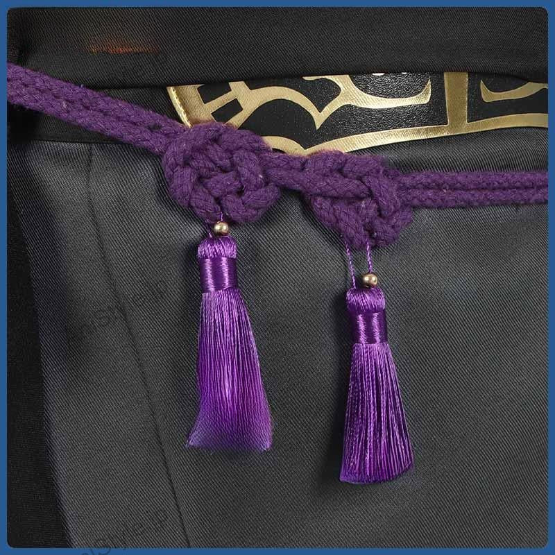 ▼羽織スエード生地で制作しています。柔らかな手触りで着心地は抜群です。袖口と裾に個性的な模様が綺麗にプリントされて、原作を忠実に再現するように心掛けています。後ろの特徴的な柄は刺繍でとても上品に見えます。