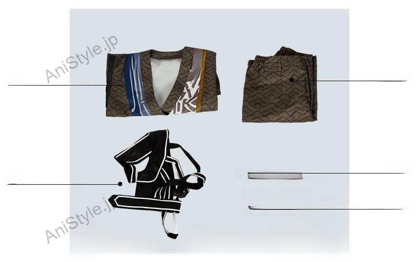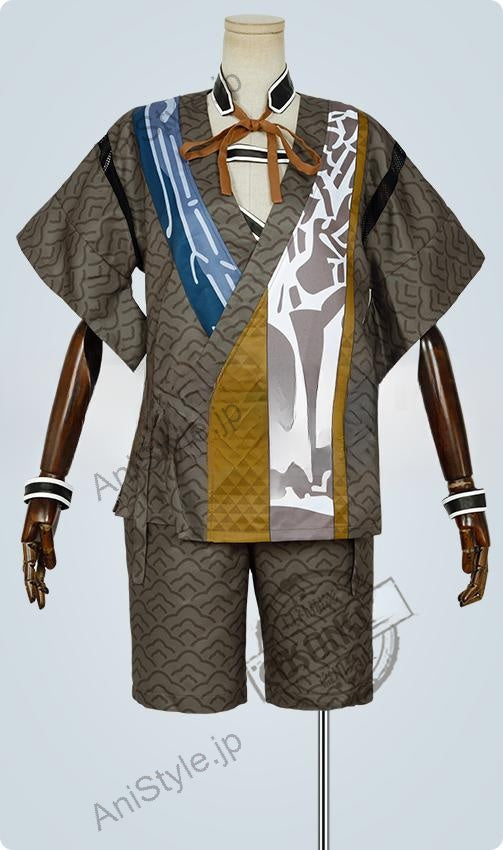 素材:ポリ混紡生地、合皮生地■商品詳細:▼上着灰色を基調したポリ混紡生地にて製作します。絵柄が捺染され、綺麗な着物です。良い素材を使って、とても上品に見えます。▼ハーフパンツ灰色を基調したポリ混紡生地にて製作します。絵柄も捺染され、上着と一体感が溢れています。▼飾り物(肩当て、首飾り、袖飾り)肩当て、首飾り、袖飾りも付属しています。■備考欄:※こちらの刀剣乱舞