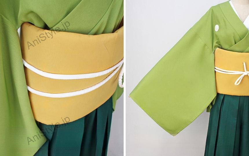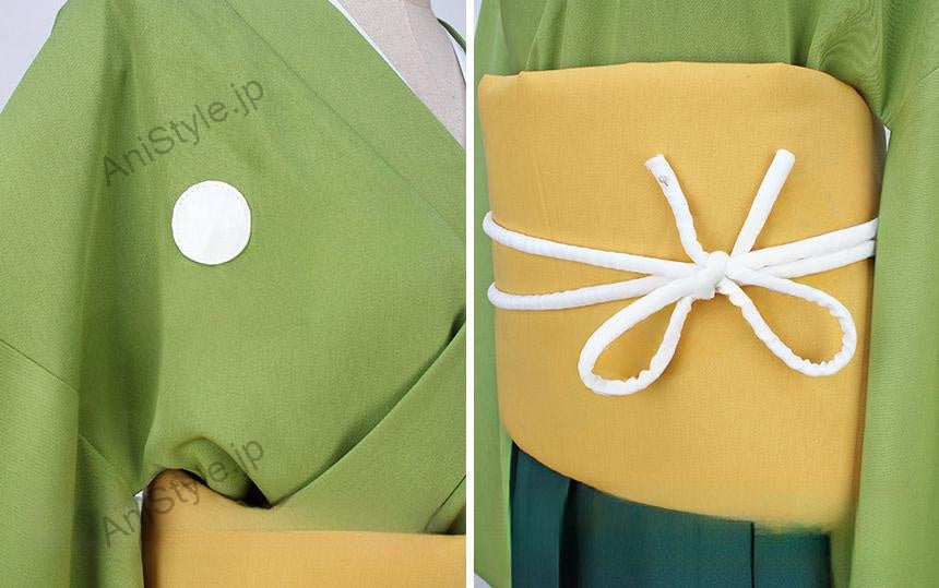 セット内容:計4点着物、袴、飾りモノ(腰巻、結び)■素材:ポリ混紡生地■商品詳細:▼着物緑を基調したポリ混紡生地にて製作します。明るい色から、クオリティが高く、さっぱりした感じが溢れています。心地もいいです。▼袴深い緑を基調したポリ混紡生地にて製作します。換気性と着心地がいいです。▼飾りモノ(腰巻、結び)セット全体のバランスが素晴らしいです。■備考欄:※こちらの刀剣乱舞