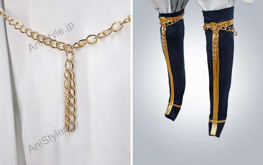 素材:ポリ混紡生地、ニット生地、合皮生地■商品詳細:▼肌襦袢紺色を基調したポリ混紡生地にて製作します。より良い材質で製作されて、とても着心地です。▼半襦袢白を基調したポリ混紡生地にて製作します。換気性と着心地がいいです。▼羽織白を基調したポリ混紡生地にて製作します。肩の下に金色のチェーンとバッジが付き、格好いいイメージが溢れています。袖口は大きく、長めに制作されて、とても綺麗です。羽織には大きい帽子も付いて、元絵を完璧に再現しました。▼内の袴灰色を基調したポリ混紡生地にて製作します。日本伝統的な袴の様式で、簡単に着脱できます。▼外の袴白を基調したポリ混紡生地にて製作します。普通の伝統的な袴の外側に別布を掛け、現作を忠実に再現できます。▼脛カバー紺色を基調したニット生地にて製作します。合皮生地の縁取りが付き、綺麗に見えます。チェーンは安全ピンで固定されて、調節も簡単にできます。▼飾りモノ(バッジ、帯3点、チェーン、手袋、腕飾り)バッジ、帯3点、チェーン、手袋、腕飾りも付属しております。■備考欄:※こちらの刀剣乱舞