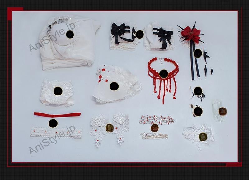 セット内容:計29点ワンピース、パンツ、飾り物(スリーブ2点、髪飾り4点、付け襟、ネックレス、耳飾り2点、ネイル10点、腿飾り3点、腕飾り2点、腰飾り2点)■素材:デシン■備考欄:無期迷途