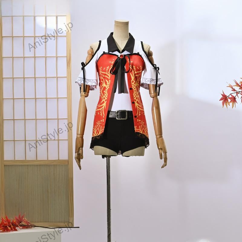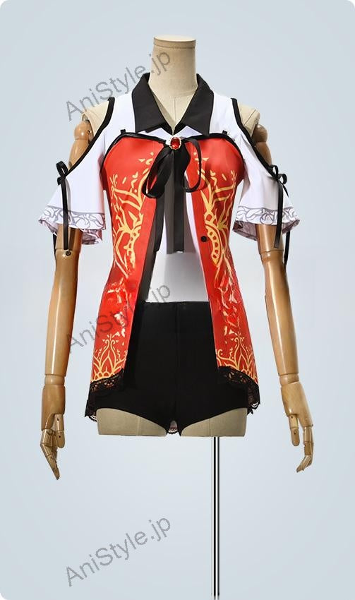 セット内容:計9点ノースリーブ、ブラウス、ショートパンツ、飾り物(ソックス2点、サ宝石飾り、透けショルダー、ベルト2点)■素材:ダンボールニット生地、ストレッチデニム■商品詳細:▼ノースリーブダンボールニット生地で制作しています。原作に忠実な絵柄が綺麗にプリントされて再現度が高いです。胸元に精巧な宝石とリボンのデザインが技ありで、注目を浴びる一着です。▼ブラウスダンボールニット生地で制作しています。シンプルなシルエットの白のブラウスですが、大胆に開いた穴から魅せる肩と背中に胡蝶模様のような入っている刺繍に目を奪われます。▼ショートパンツストレッチデニムで制作しています。ブラックを基調として、足が長く細く見せてくれてスタイルアップ、トップスとの相性も良くて色々なコーデを完成させてくれるシンプルなショートパンツです。■備考欄:零