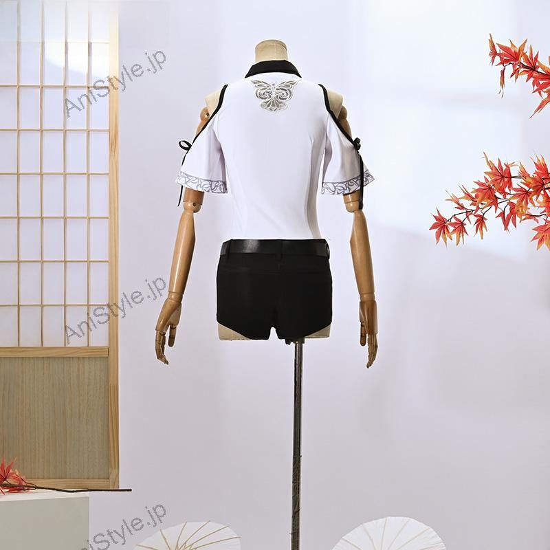素材:ダンボールニット生地、ストレッチデニム■商品詳細:▼ノースリーブダンボールニット生地で制作しています。原作に忠実な絵柄が綺麗にプリントされて再現度が高いです。胸元に精巧な宝石とリボンのデザインが技ありで、注目を浴びる一着です。▼ブラウスダンボールニット生地で制作しています。シンプルなシルエットの白のブラウスですが、大胆に開いた穴から魅せる肩と背中に胡蝶模様のような入っている刺繍に目を奪われます。▼ショートパンツストレッチデニムで制作しています。ブラックを基調として、足が長く細く見せてくれてスタイルアップ、トップスとの相性も良くて色々なコーデを完成させてくれるシンプルなショートパンツです。■備考欄:零