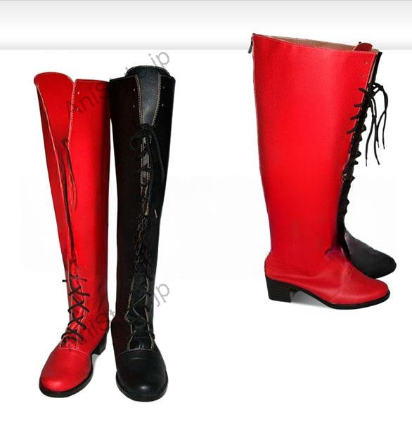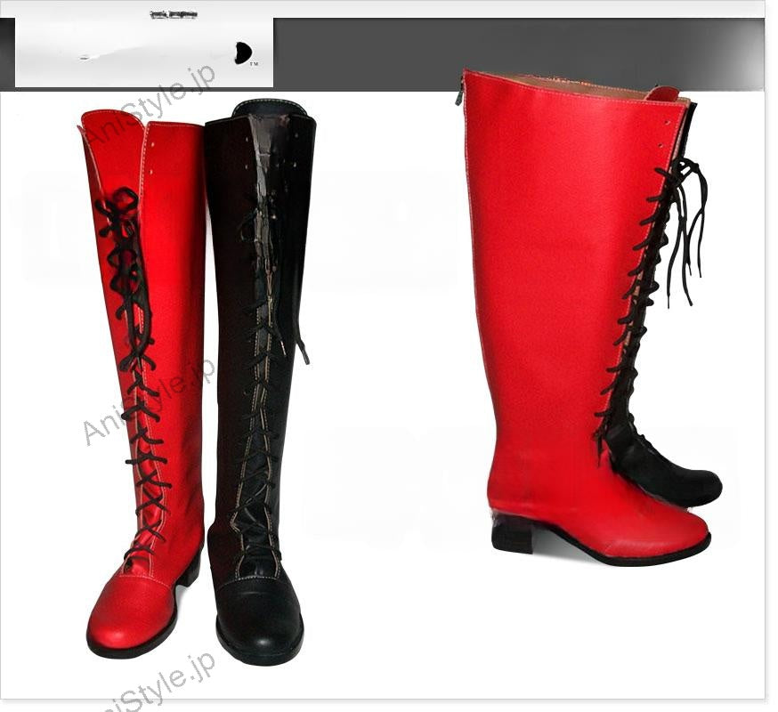 コスプレ靴/ブーツ「素材」合皮、ラバー「カラー」レッド・ブラック「ヒール」低ヒール「筒丈」