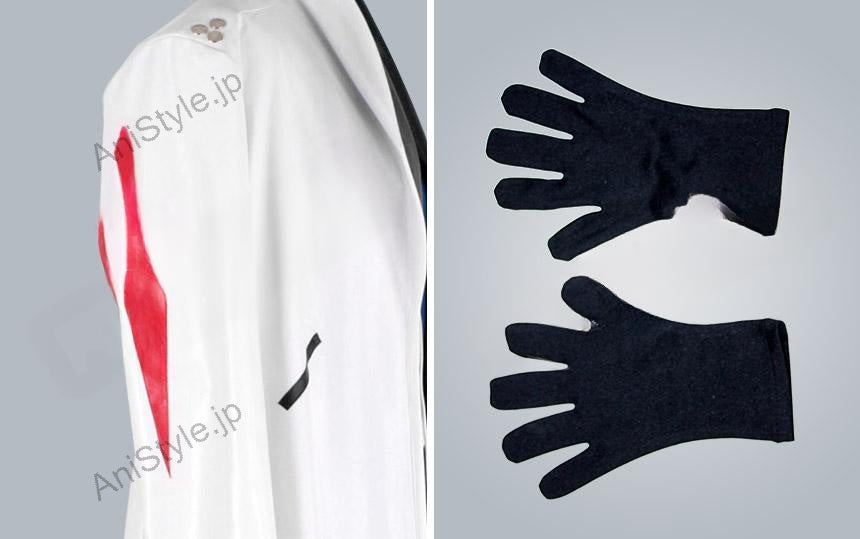 素材:合皮生地、ニット生地■商品詳細:▼コート白を基調した合皮生地にて製作します。袖口と裏襟は黒です。左右腕の赤い印が注目です。▼ベスト青を基調した合皮生地にて製作します。白い縁取りが飾っています。ファスナーが付いたので、着脱安いです。▼ズボン黒を基調した合皮生地にて製作します。裾の部分は注目です。▼手袋手袋が付属します。■備考欄:※こちらのFINAL