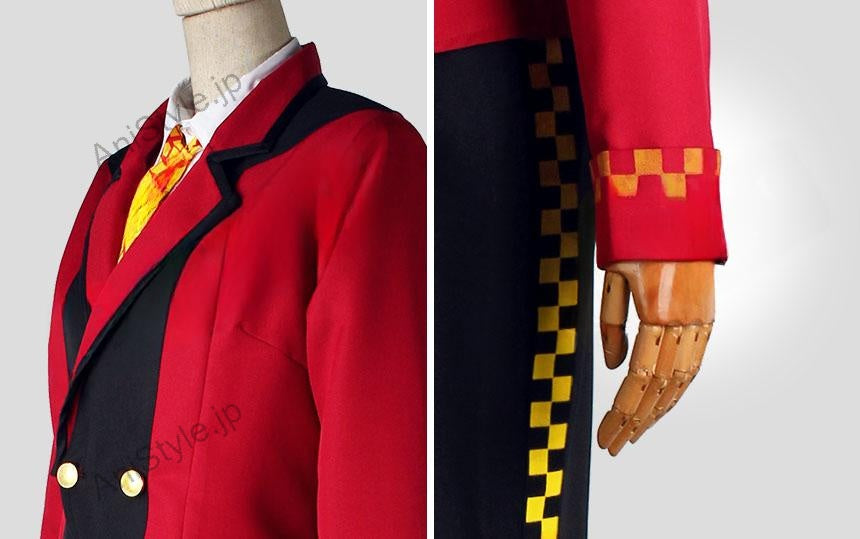 素材:ポリ混紡生地、シャツ生地■商品詳細:▼上着赤を基調したポリ混紡生地にて製作します。襟には黒い縁取りがあり、上品な感じがします。制服の様式で、普段着でも可能です。正面には金色のボタンが付き、着脱するのは便利になりました。元絵に忠実しました。▼シャツ白を基調したシャツ専用生地にて製作します。前身の透明なボタンで着脱して頂きます。着心地がよいシャツです。▼ズボン黒を基調したポリ混紡生地にて製作します。両側の図案が特別です。正面のボタンとファスナーで着脱して頂きます。▼ネクタイ長さが調節することができ、そして取り外せます。■備考欄:※こちらのSOUL